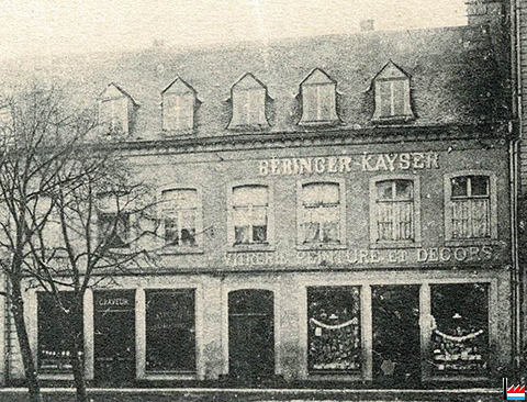 Esch/Alzette - Norbert Metz Platz: Louise Knaff? - Café de Munich Franck-Stoffel - Wagner-van Werveke - Grand Café de la Chapelle - Beringer-Kayser (Linoleum, Glas, Tapeten, Farben), Esch/Alzette, place Norbert-Metz (Carte postale: Papiers en gros P. Houstraas, Luxembourg-Gare, Nr 43; Collection: industrie.lu)