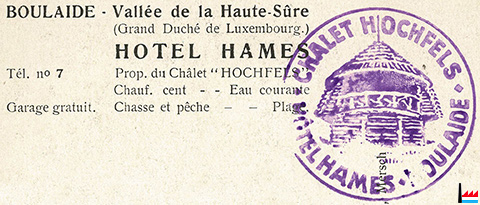 Châlet Hochfels - Hôtel Hames, Boulaide - >=1936 (Carte postale: Manufacture de Cartes-Vues, Ed. Hansen, Mersch; collection: industrie.lu)
