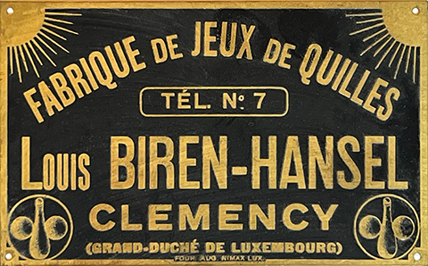 ![]() Fabrique de jeux de quilles Louis BIREN-HANSEL, Clemency - Tél: N° 7 (Collection: industrie.lu) |