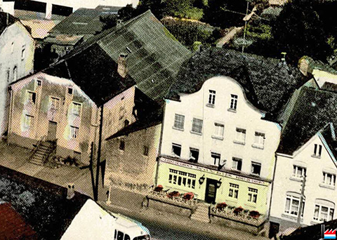 ![]() Riets d'Epicerie Lauer - Faber, Konsdref - Ancienne épicerie Lauer - Faber, Consdorf, 4 route de Luxembourg (Extrait carte postale CIM Consdorf (Luxembourg) 66-26A - Vue aérienne - Excl. Goedert-Hoffstetter; collection: industrie.lu) |