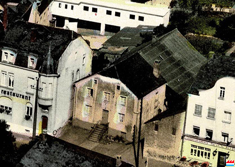 ![]() Haus Beim Schousterpitchen, Consdorf, 3 route de Luxembourg (Extrait carte postale CIM Consdorf (Luxembourg) 66-26A - Vue aérienne - Excl. Goedert-Hoffstetter; collection: industrie.lu) |