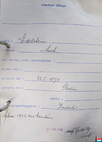 ![]() Altersheim Ulflingen - Kurt Edelstein - 28.7.1942 - nach Theresienstadt |