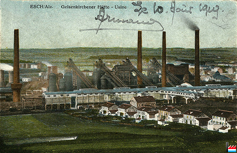 | <=1917 | ![]() Gelsenkirchener Bergwerks-A.G. Abteilung Aachener Hüttenverein Adolf-Emil-Hütte, Stahl-Walzwerk Esch/Alzette - 3.3.1917 (Postkarte Collection: Marcel Schlim) |