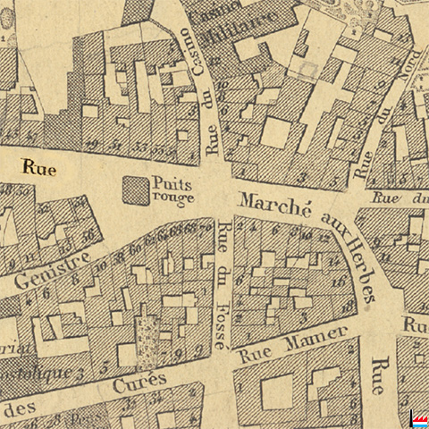 Carte 1862: Puits Rouge, Luxembourg (Plan de la Ville et de la Forteresse de Luxembourg, dressé par J.B. Liesch, vérificateur-chef de bureau du Cadastre - 1862) |