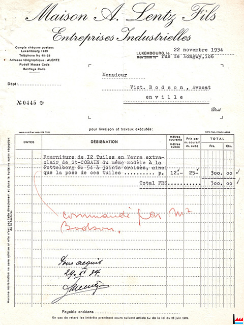 Luxemburg, 30. Aug. - Nach einer Bekanntmachung im „Memorial“ wurde die Unternehmer-Firma „Maison André Lentz Fils“ unter kontrollierte Führung gestellt. Als Kommissare wurden ernannt die HH. Karl Morché, Unternehmer, und René Frank, Rechtsanwalt. (Luxemburger Zeitung: 30.8.1935) |