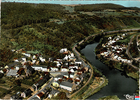 ![]() Moersdorf - Fliegeraufnahme - um 1936 (Carte postale: Photo Schwarz, Grevenmacher, tél: 74; Collection: industrie.lu) |