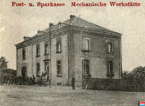 Mechanische Werkstätte Schmit, Strassen, 179 route d'Arlon - Post- und Sparkasse - <=1911 (Extrait de la Carte postale: Kunstverlag Max Löwenthal, Frankfurt/Main Ostendstrasse 51 - No 400 509 - 8792; collection: industrie.lu)