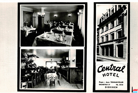 Central Hôtel, Diekirch, 27 Grand'rue, propr. Jean Tonnar-Feller, tél: 3080 (Carte postale: Edit.: Nic. Sibenaler, Luxembourg - Photos: Jos Ferry, Diekirch; collection: industrie.lu)