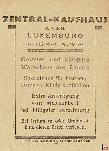 2.2.1942 | Wiedereröffnung: Zentral-Kaufhaus, Luxemburg, Alte Bahnhofstraße 57-59 |
