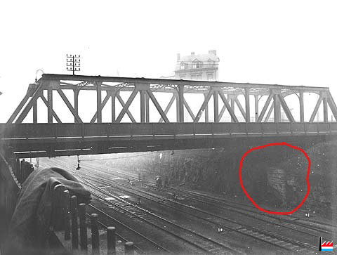 Bunker ënnert der Bréck ganz riets - do war duerno een Ofstellraum fir d'Veloen vun de Schmelzarbechter (Info: Alphonse Wagner)