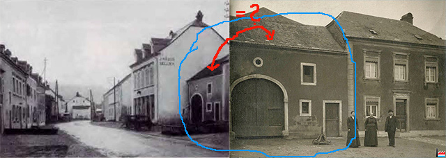 Hei ass déi selwecht Plaz vun där anerer Säit op enger anerer Kart déi 1909 gestempelt gouf: Kinnt hei net och de Göpel stoen, oder wat ass dat?
