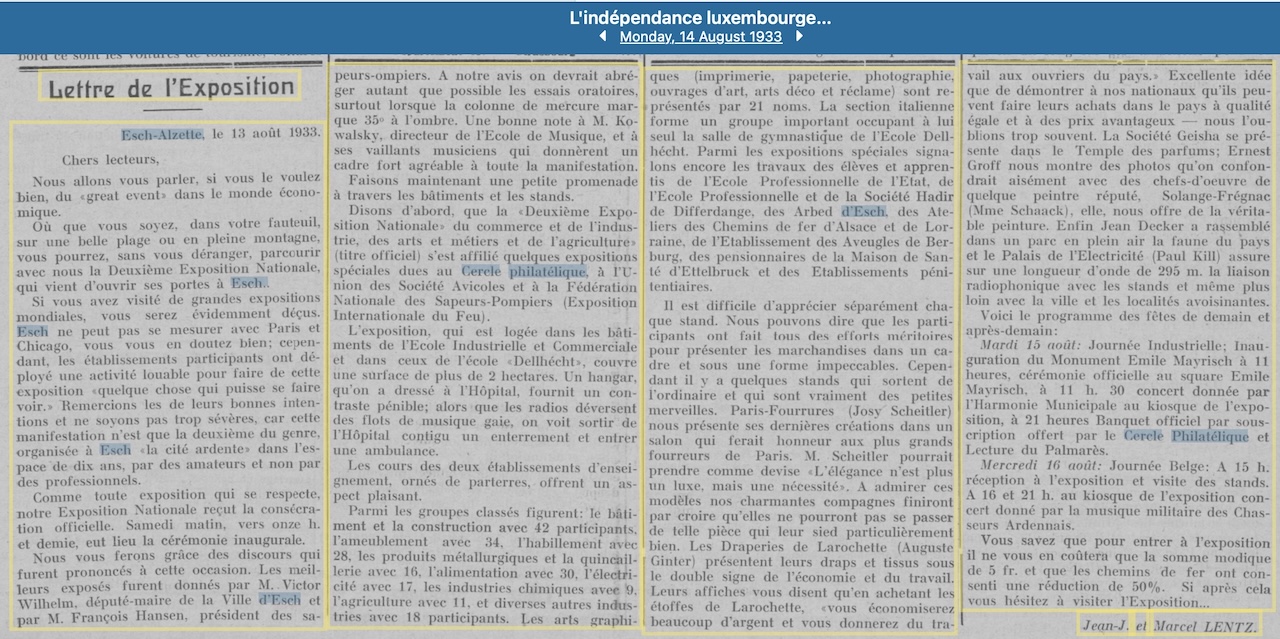 Exposition de timbres-poste - Briefmarken-Ausstellung - Esposizione di francobolli - Cercle philatélique, Esch/Alzette - Postes et télégraphes - 12 - 22.8.1933 ( Carte postale : Collection: Diese E-Mail-Adresse ist vor Spambots geschützt! Zur Anzeige muss JavaScript eingeschaltet sein.)