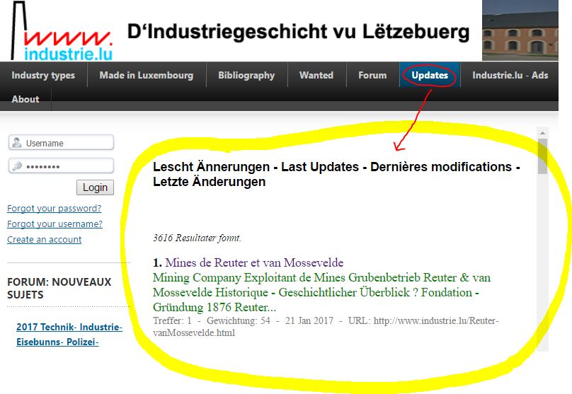 Nei Rubrik um industrie.lu: Lescht Ännerungen - Last Updates - Dernières modifications - Letzte Änderungen: