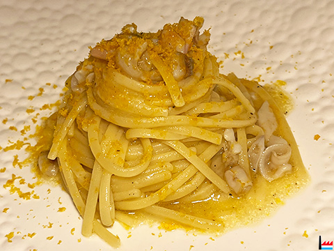 Restaurant Kore, Stengefort - Steinfort - Linguine “Mancini”, ail, huile et piment, couteaux de mer et poutargue de mulet (Photo: 23.9.2025 jmo)