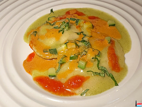 Restaurant Kore, Stengefort - Steinfort - Ravioli au homard, chutney de tomate, ristretto aux courgettes et basilic (Photo: 23.9.2025 jmo)
