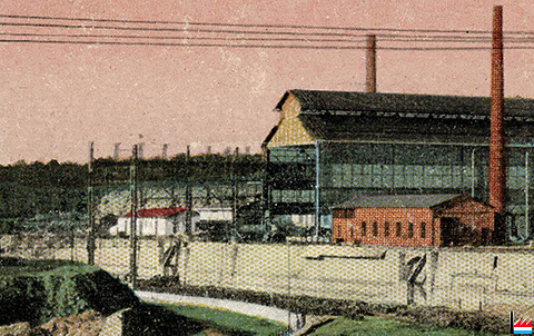 Die Steinforter Hütte im heutigen Zustand (1935): Elektrische Zentrale - Centrale électrique - 1910 - aus: Daten aus der luxemburgischen Eisenindustrie, n° VII, zusammengestellt von Camille Aschman, AZ, 1935.