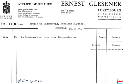 Atelier de reliure Ernest Glesener, Luxembourg, 25, rue des Bains, tél : 23480 |