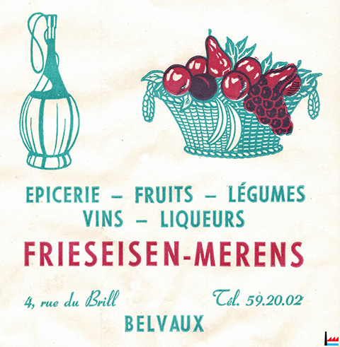 Epicerie Frieseisen-Merens, Belvaux, 4 rue du Brill, tél: 592002 - détail d'un sachet (collection: industrie.lu)