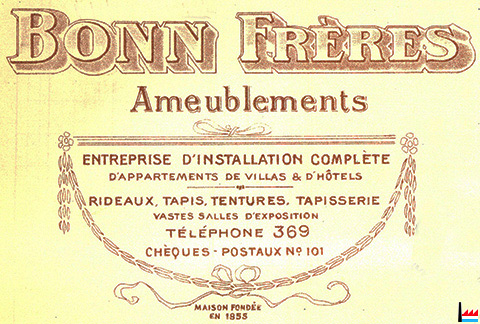 | 1918 | Ouverture des nouvelles Salles d'Exposition BONN Freres, ameublements (Die Volkstribüne: 6.7.1918) |