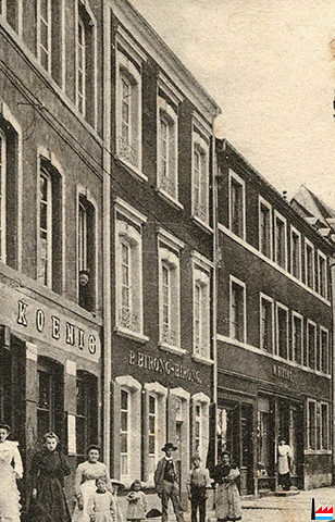 ![]() Geschwister Schock-Bongert, Rotes Haus - Café P. Birong-Birong, Grevenmacher, Großgasse - <=1903 (Extrait carte postale: N. Gary, Bullay; Collection: industrie.lu) |