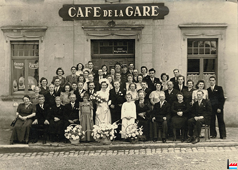 Wiem seng Hochzäit geet hei virum Café de la Gare zu Hoen gefeiert? Wéini war déi Hochzäit? Dësen Datum giff eis hëllefen dës Foto ze datéieren. Villmools Merci am Viraus!