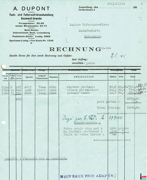 <=7.1945 | ![]() Armand Dupont, Luxembourg, 9 rue Goethe, tél: 5309 (Collection industrie.lu) Tuch- und Futterstoff-Grosshandlung - Baumwoll-Gewebe |