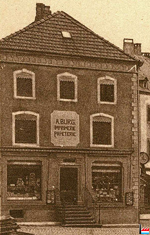 ![]() Papeterie - Imprimerie A. Burg, Echternach, 12 place du Marché (Extrait carte postale: Ern. Thill, Bruxelles, série 19, n° 7 - Nels; Collection: industrie.lu) |