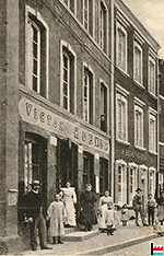 Grevenmacher, Grand'rue (Carte postale: No. 9 Maison de gros P. Houstraas, Luxembourg & Metz; Collection: industrie.lu)