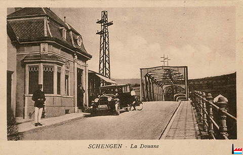 Schengen - Le Pont - La Douane <=1929 (Carte postale: Photo Ed. Hansen, Mersch; Collection: industrie.lu)