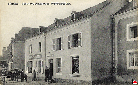 Boucherie - Restaurant - Café Piermantier, Lintgen (Carte postale: 11838 Edm. Hansen, Mersch)