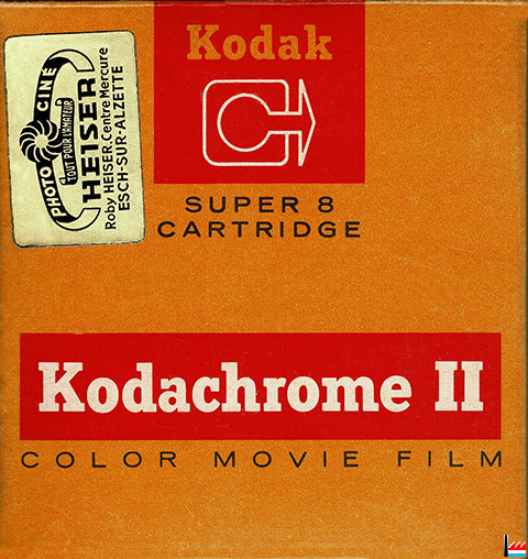 | <=1970 | ![]() Kodachrome II Color Movie Film - Super 8 Cartridge - 50 ft (15,24 m) KA 464 P - Outdoor and Indoor Type A - Daylight: ASA 25 - 15 DIN - Photoflood: ASA 40 - 17 DIN - process before: 10.1970 (Collection: industrie.lu) Photo-Ciné Heiser Roby, Esch/Alzette (Centre Mercure) |