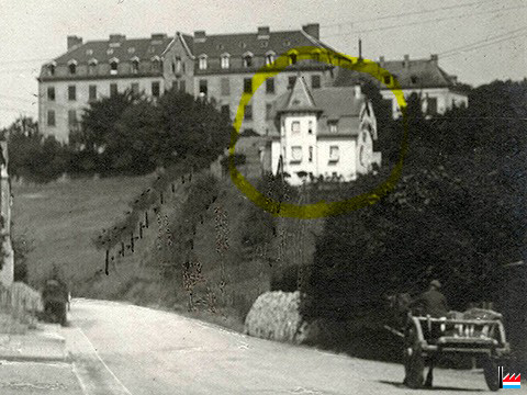 ![]() Vir an der Mëtt d'Haus Jos. Henckels, 35 route de Colmar-Berg (fréier 35 route de Liège), Mersch - am Hannergrond d'Mierscher Klouschter (Extrait de la photo originale pour carte postale: Manufacture de Cartes-Vues, Edm. Hansen, Mersch; collection: industrie.lu) |