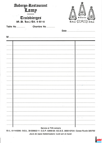 | <=1984 | Auberge-Restaurant Lamy, Troisvierges, tél: 98041 Propr.: Mme Molitor-Gengler |