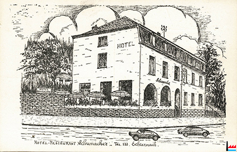 ![]() Hôtel Schumacher, Weilerbach, tél: 133 (Carte postale: Collection: industrie.lu) |