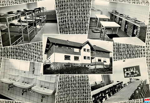| 1.7.1958 | ![]() Neue Jugendherberge Bettborn, Préizerdaul (Dessin: Roger Gerson) 2 Schlafsäle mit je 20 Betten, 1 Gemeinschaftsraum von 36 m2, Waschräume mit Brausen, eine Küche und einen Wohnraum für die Herbergsmutter. |