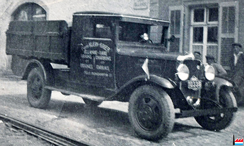 Café Klein-Krier Pierre, Ellange-Gare, 10 rue de la Gare, Téléphone Mondorf 14; Camion Chevrolet N°10339 (Collection: Jean Kail)