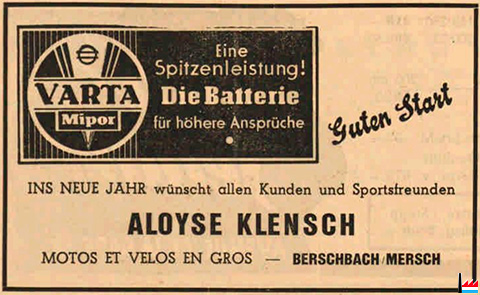 | <=1951 | ![]() Aloyse KLENSCH, Berschbach/Mersch Motos et vélos en gros (LW: 2.1.1951) |