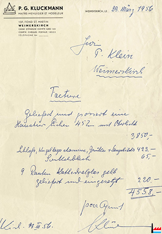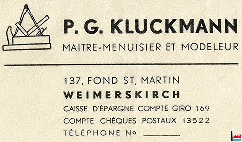 <=1956 | ![]() Klückmann Paul-Gauthier, maître-menuisier et modeleur, Weimerskirch, 137 Fond St. Martin (Collection: industrie.lu) |