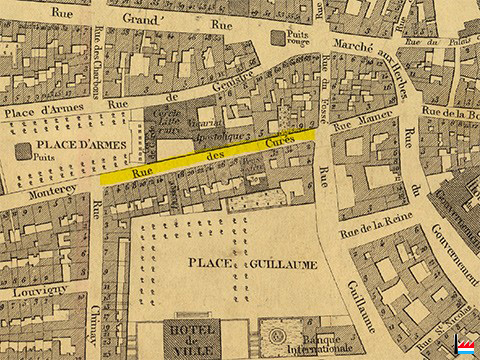 Luxembourg - rue des Curés (Plan de la Ville et de la Forteresse de Luxembourg, dressé par J.B. Liesch, vérificateur-chef de bureau du Cadastre - 1862)