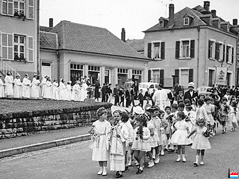 | 11.1946 | Mersch. - Das in unmittelbarer Nähe der Kirche gelegene Wohnhaus mit Dependenzien und großem Garten des verstorbenen Bürgermeisters Herrn Charles Eichhorn ging durch freihändigen Verkauf in den Besitz des Herrn Jacques Ludwig, Haushaltwarengeschäft aus Mersch über. Kaufpreis unbekannt. (LW: 22.11.1946) |