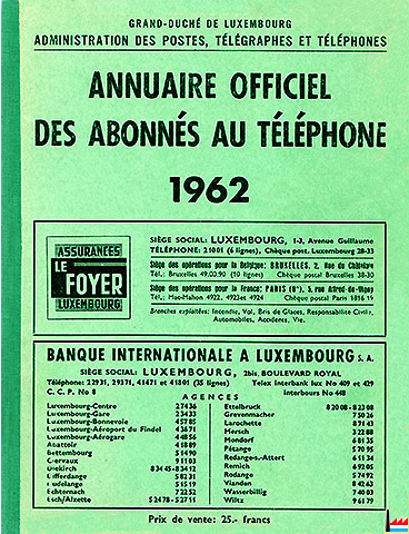 Annuaire officiel des abonnés au téléphone du Grand-Duché de Luxembourg - 1962 (Collection: industrie.lu)
