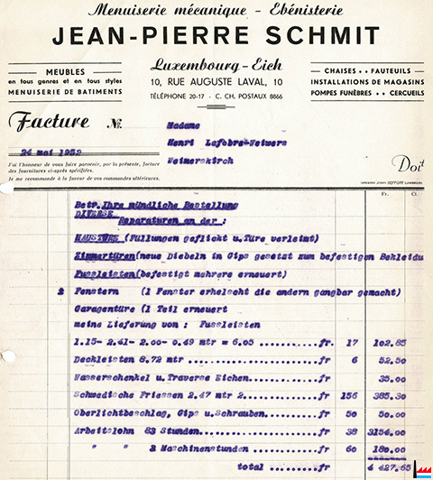 <=1942 | Möbel- und Bauschreinerei Schmit Jean-Pierre, Eich, 10 rue Aug. Laval |