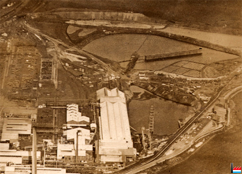 1005, au fond les hauts-fourneaux de HADIR en novembre 1950 (Photo:
