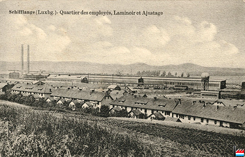 Schifflange - Quartier des employés, Laminoir et Ajustage (Carte postale: Edit. P. Hoffmann-Schmit, Kayl; Collection: industrie.lu)