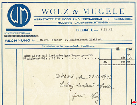1943 | ![]() Wolz & Mugele, Diekirch - Rechnung an Théodore V. Kaufenberg, Diekirch - 1.11.1943 (Collection: industrie.lu) |