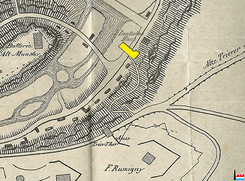 Plan montrant la situation de 1824 (dans: Centenaire de la Fanfare Grand-Ducale de Clausen - 1951):