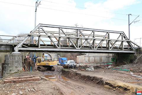 nouveau pont (en construction) passant par-dessus de la voie à Schouweiler (route de Limpach) (Photos: 15.4.2005 jmo)