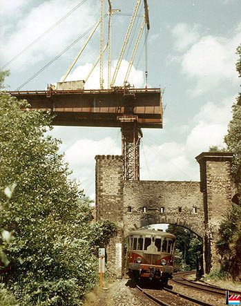 Reconstruction du pont CFL dans la Montée de Clausen: projet, fabrication et montage par Barblé S.A. vers 1972 (Photo: Barblé)