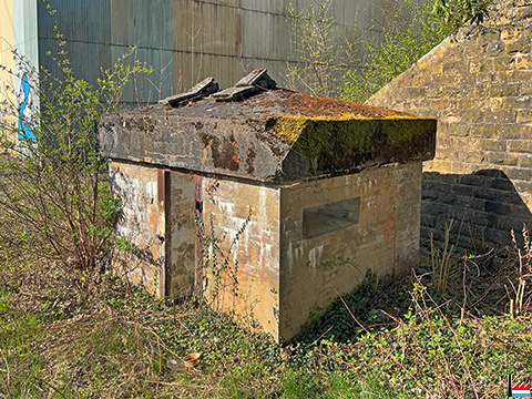 De Bunker aus dem WWII bei der Bréck zu Dummeldeng - Beggen, direkt niewen dem Vëloswee - Bunker (Hochbunker) bei der Brücke Dommeldingen - Beggen - Bunker près du Pont routier à Dommeldange - Beggen (Photos: