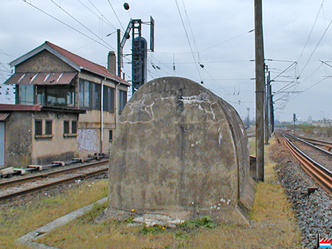 Riets: De Bunker aus dem WWII - Dëse Bunker ass bei der Iwwerdeckung vun den Eisebunnsgleiser, zesummen mat de Brécken verschwonnen